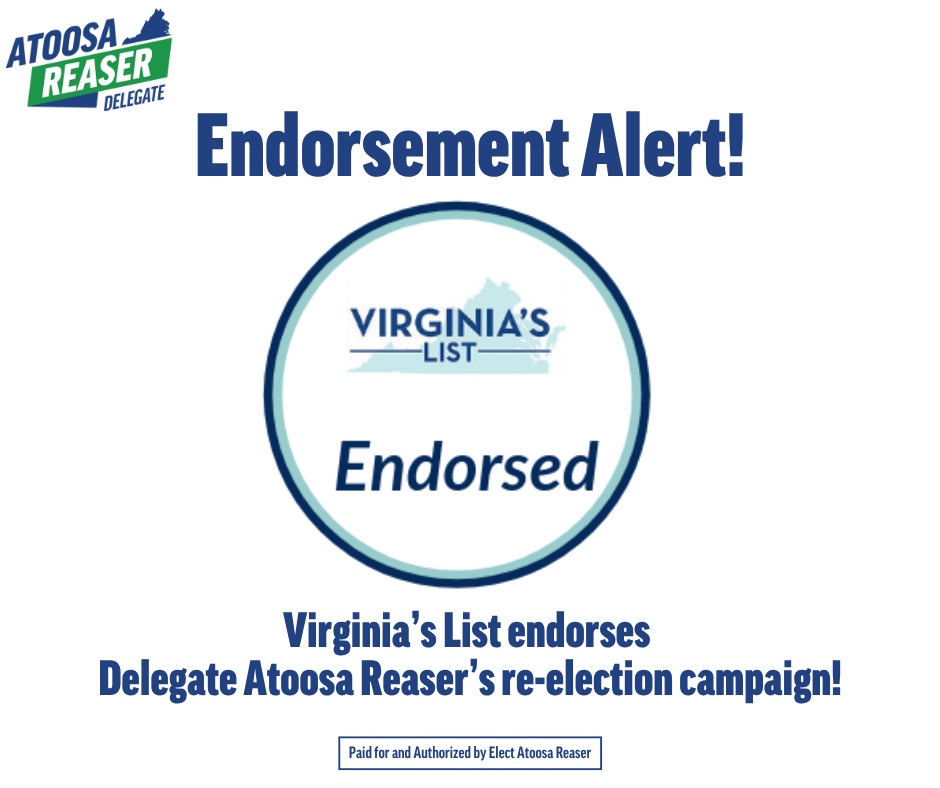 We need pro-choice champions in state government. I am honored to earn @Virginia’s List’s endorsement and pledge to continue protecting our fundamental freedoms!