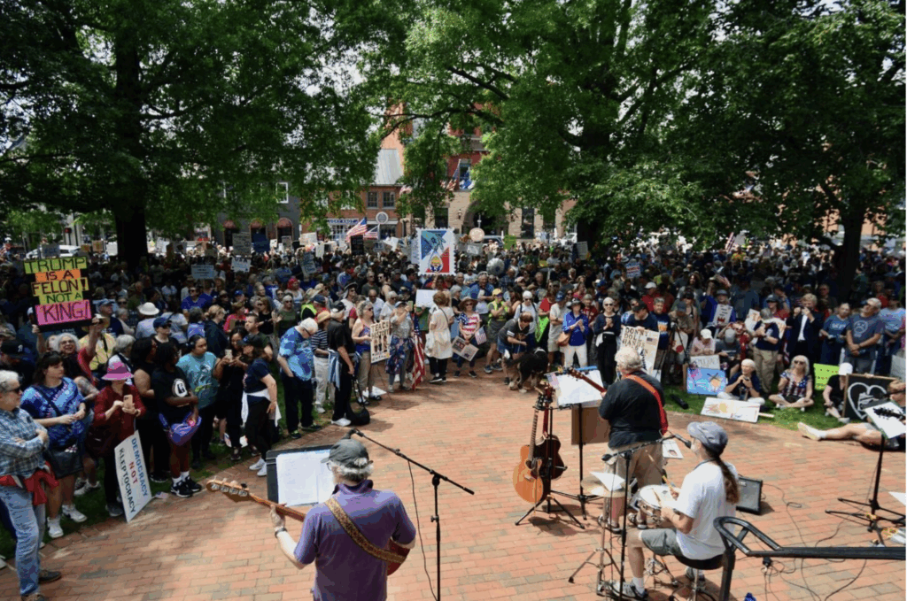 ‘No Kings’ Protest Draws Estimated 1,700 on Courthouse Lawn
