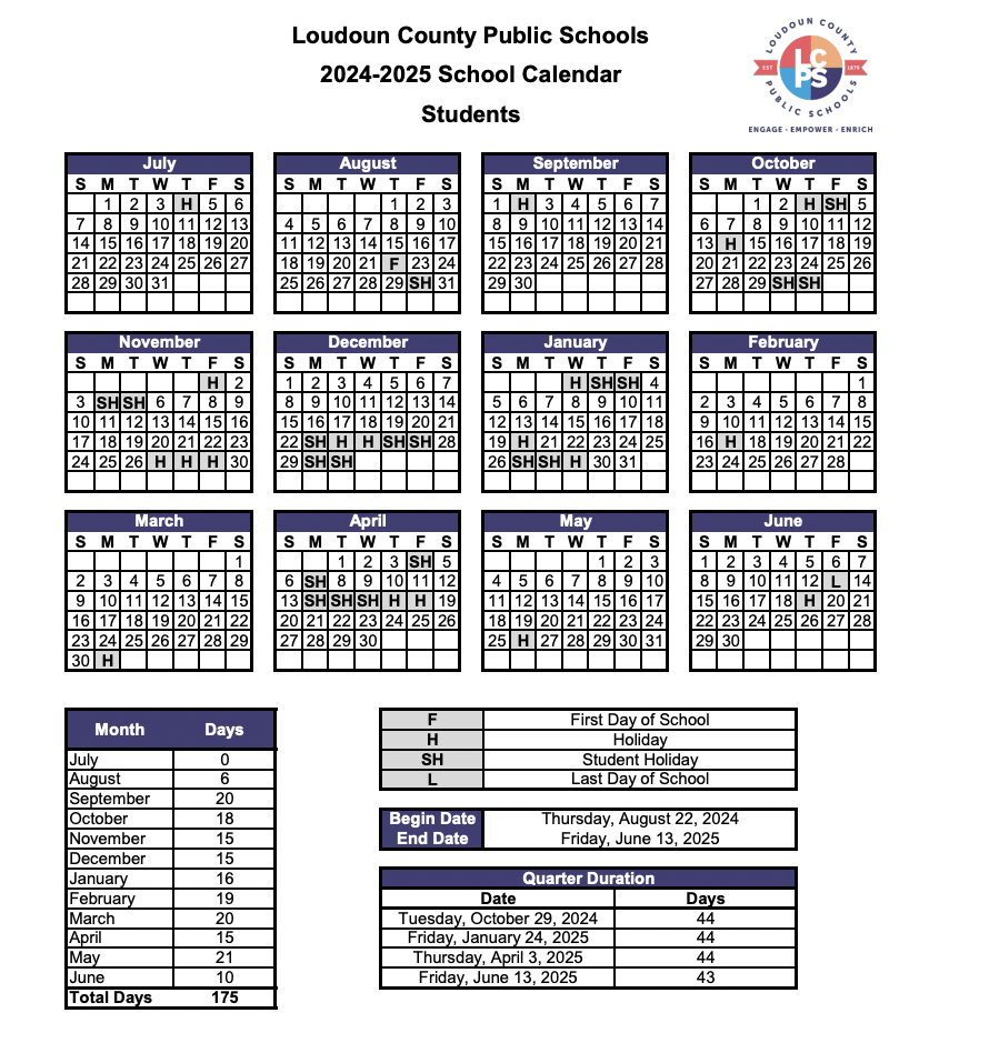Happy Back to School Week! On August 22nd, LCPS students will return to the classroom for an exciting school year. The calendar below shows the essential dates students and parents need to know for the upcoming year. If you have additional questions or need more details, visit https://www.lcps.org/ or contact your school directly!