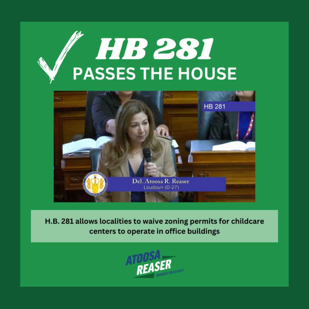 Big news! My first bill has PASSED the House of Delegates and is on its way over to the Senate of Virginia! This bill, HB281, helps working families, businesses, and our economy by allowing for the creation of more mixed-use spaces.