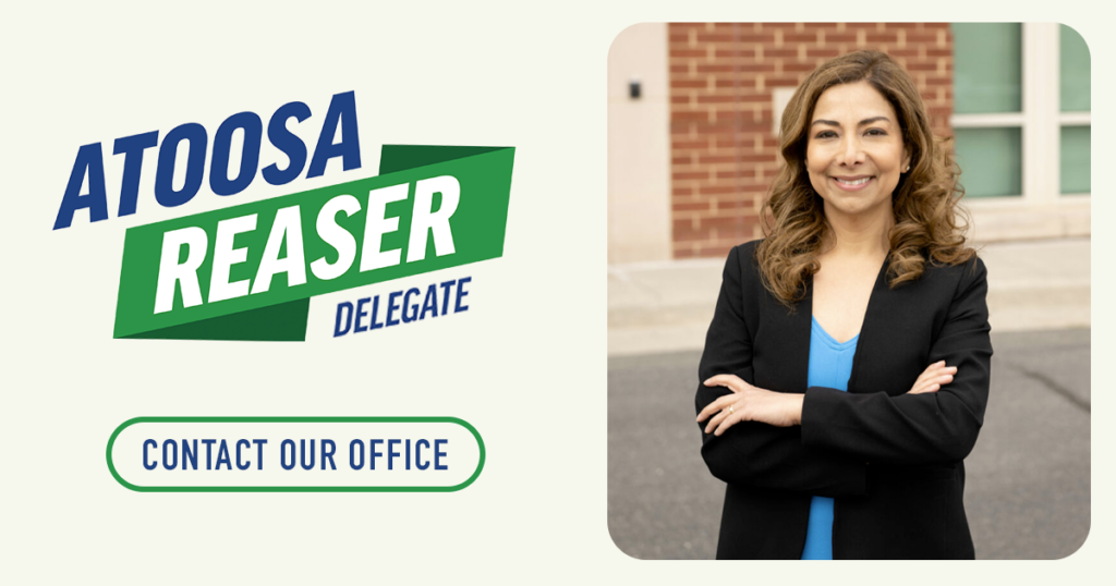 Loudoun County School Board Member Atoosa Reaser announced a slate of new endorsements today in her race for Delegate: Congresswoman Jennifer Wexton, Former Virginia Secretary of Education Atif Qarni, Delegates Dan Helmer and Sam Rasoul, and Former Leesburg Vice Mayor Marty Martinez have endorsed Reaser in her campaign for the